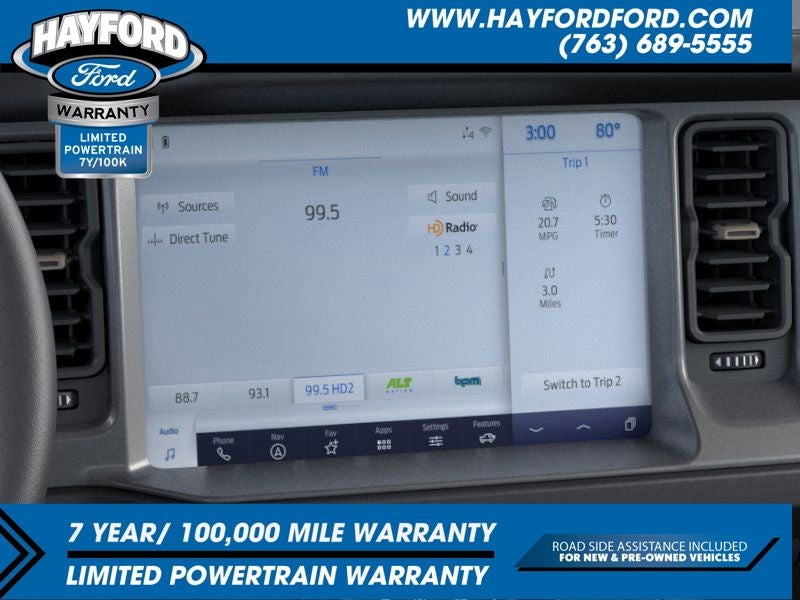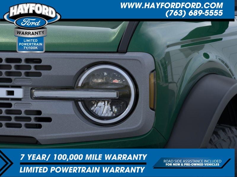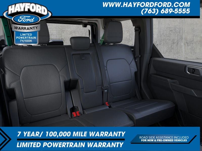 Contact Hayford Ford at (763)689-5555 or Visit us online at www.hayfordford.com for more pictures and details. Come take a test drive today. Located 2 Miles north of Isanti on Hwy 65. Internet price includes $500 Hayford Finance Bonus and $500 Trade-in Bonus. Ask For details. Check out this vehicle's great Equipment Group 334A Lux Package (360-Degree Camera, Adaptive Cruise Control, Evasive Steering Assist, Front Parking Sensors, Information on Demand Panel, Radio: B&O Sound System by Bang & Olufsen, Sideview Mirrors, Universal Garage Door Opener, and Connected Navigation), Sasquatch Package (4.7 Final Drive Ratio, High Clearance Fender Flares, High Clearance Suspension, and Position-Sensitive Bilstein Shock Absorbers), 4-Wheel Disc Brakes, 7 Speakers, ABS brakes, Air Conditioning, Alloy wheels, AM/FM radio: SiriusXM with 360L, AM/FM Stereo, Auto High-beam Headlights, Auto-dimming Rear-View mirror, Brake assist, Compass, Delay-off headlights, Driver door bin, Driver vanity mirror, Dual front impact airbags, Dual front side impact airbags, Electronic Stability Control, Emergency communication system: 911 Assist, Exterior Parking Camera Rear, Front anti-roll bar, Front Bucket Seats, Front Center Armrest, Front fog lights, Front reading lights, Front wheel independent suspension, Fully automatic headlights, Heated door mirrors, Heated front seats, Heated steering wheel, Illuminated entry, Integrated roll-over protection, Leather Shift Knob, Low tire pressure warning, Marine Grade Vinyl Heated Bucket Seats, Navigation System, Occupant sensing airbag, Outside temperature display, Overhead airbag, Overhead console, Panic alarm, Passenger door bin, Passenger vanity mirror, Power door mirrors, Power steering, Power windows, Radio data system, Remote keyless entry, Security system, SiriusXM w/360L, Speed control, Split folding rear seat, Steering wheel mounted audio controls, SYNC 4, Tachometer, Telescoping steering wheel, Tilt steering wheel, Traction control, Trip computer, Variably intermittent wipers, and Voltmeter. Price includes: $2500 - Retail Customer Cash. Exp. 03/31/2026