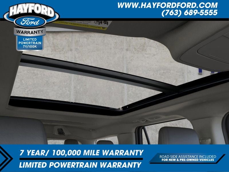 Contact Hayford Ford at (763)689-5555 or Visit us online at www.hayfordford.com for more pictures and details. Come take a test drive today. Located 2 Miles north of Isanti on Hwy 65. Internet price includes $500 Hayford Finance Bonus and $500 Trade-in Bonus. Ask For details. Check out this vehicle's great Equipment Group 202A High Package (110V/400W AC Power Outlet, 26mm Engine Radiator, 2nd Row Power-Folding Captain's Chairs, 360-Degree Zone Lighting, 3rd Row Flexible Seating, 3rd Row Vinyl Seats, 4-Door Intelligent Access (Lock/Unlock), ActiveX Front Heated Captain's Chairs, BlueCruise Equipped, Flex Powered Console, Ford Split Gate, Front Side Laminated Glass, Heated Steering Wheel, Heavy-Duty Trailer Tow, Integrated Trailer Brake Control, Memory Driver Seat, Power Panoramic Vista Roof w/Power Sunshade, Power Tilt/Telescopic Steering Wheel w/Memory, Power-Folding Sideview Mirrors w/Autofold, Rain Sensing Wipers, SecuriCode Keyless Entry Pad, Universal Garage Door Opener, USB Ports, Wheels: 20 Carbonized Gray Bright Machined Aluminum, and Wireless Charging Pad), ABS brakes, Active Cruise Control, Compass, Electronic Stability Control, Front dual zone A/C, Heated door mirrors, Illuminated entry, Low tire pressure warning, Navigation System, Remote keyless entry, Traction control, 3.73 Axle Ratio, 3rd row seats: split-bench, 4-Wheel Disc Brakes, 6 Speakers, Air Conditioning, AM/FM radio: SiriusXM with 360L, Apple CarPlay/Android Auto, Auto High-beam Headlights, Auto-dimming Rear-View mirror, Automatic temperature control, Brake assist, Bumpers: body-color, Cloth Front Captain's Chairs, Delay-off headlights, Driver door bin, Driver vanity mirror, Dual front impact airbags, Dual front side impact airbags, Emergency communication system: 911 Assist, Exterior Parking Camera Rear, Four wheel independent suspension, Front anti-roll bar, Front Bucket Seats, Front Center Armrest, Front reading lights, Fully automatic headlights, Occupant sensing airbag, Outside temperature display, Overhead airbag, Overhead console, Panic alarm, Passenger door bin, Passenger vanity mirror, Power door mirrors, Power driver seat, Power passenger seat, Power steering, Power windows, Radio data system, Radio: AM/FM Stereo w/MP3 Capable, Rear air conditioning, Rear anti-roll bar, Rear reading lights, Rear window defroster, Rear window wiper, Reclining 3rd row seat, Security system, SiriusXM w/360L, Speed control, Speed-sensing steering, Speed-Sensitive Wipers, Split folding rear seat, Spoiler, Steering wheel mounted audio controls, Tachometer, Telescoping steering wheel, Tilt steering wheel, Trip computer, Variably intermittent wipers, Voltmeter, and Wheels: 18 Dark Alloy Painted Aluminum.