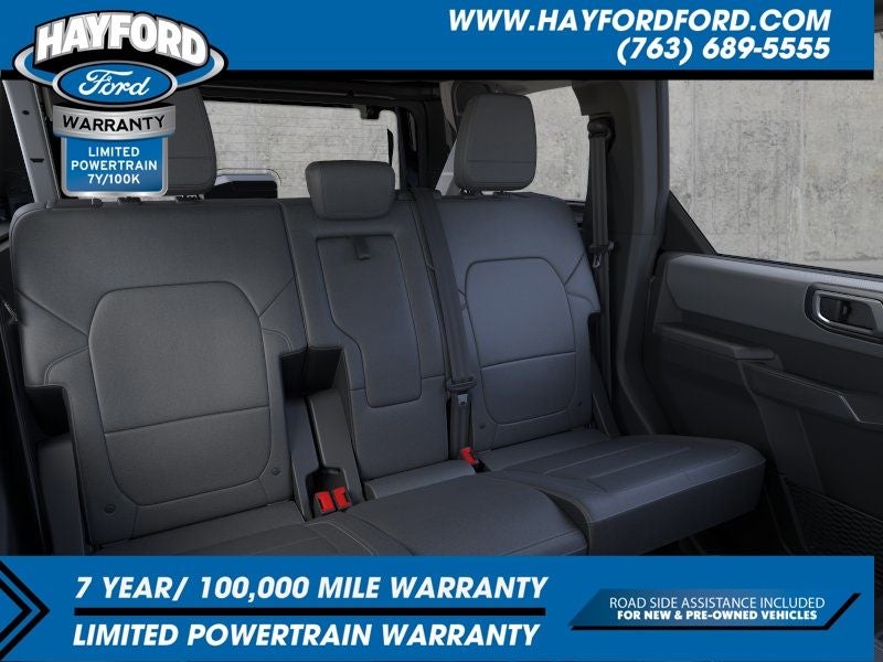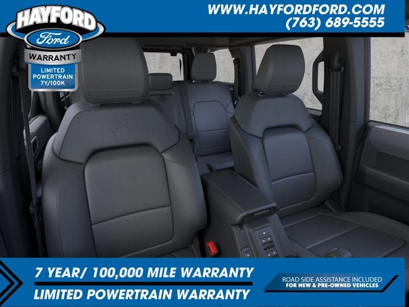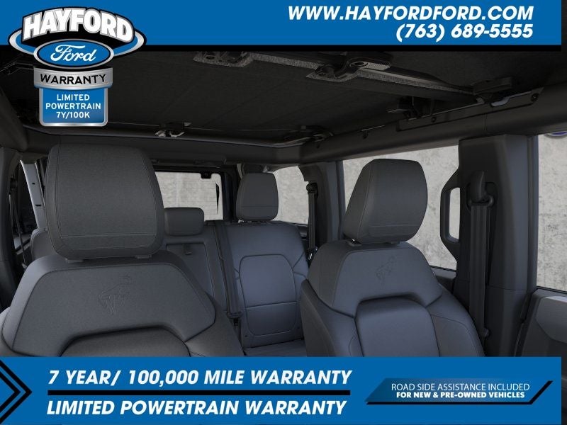 Contact Hayford Ford at (763)689-5555 or Visit us online at www.hayfordford.com for more pictures and details. Come take a test drive today. Located 2 Miles north of Isanti on Hwy 65 Ask For details. Check out this vehicle's great Black Diamond Package (4.46 Final Drive Ratio with Rear Locking Differential, Auxiliary Switches, LED Fog Lamps, Powder Coated Steel Front and Rear Bumpers, Rock Rails, Washout Capable Rubberized Flooring, and Wheels: 17 Black High Gloss-Painted Steel), Equipment Group 222A Mid Package (2-Door Intelligent Access with Lock/Unlock, AM/FM Stereo, Ambient Footwell Lighting, Cloth Bucket Seats, Connected Navigation, Driver and Front Passenger Illuminated Sliding Visor Vanity Mirrors, Dual Smart Charging USB Ports, Dual-Zone Electronic Automatic Temperature Control, Front Row Heated Seats, Pro Power Onboard - 400W, Rear Parking Sensors, SiriusXM with 360L, SYNC 4, and Wheels: 17 Carbonized Gray-Painted Aluminum), Ford Connectivity Package (1-Year Included), 4-Wheel Disc Brakes, 7 Speakers, ABS brakes, Air Conditioning, Alloy wheels, AM/FM radio: SiriusXM with 360L, Auto High-Beam Headlamps, Auto High-beam Headlights, BLIS Blind Spot Information System, Brake assist, Carbonized Gray Molded-in-Color Hard Top, Compass, Delay-off headlights, Driver door bin, Driver vanity mirror, Dual front impact airbags, Dual front side impact airbags, Electronic Stability Control, Emergency communication system: 911 Assist, Exterior Parking Camera Rear, Front anti-roll bar, Front Bucket Seats, Front Center Armrest, Front License Plate Bracket, Front reading lights, Front Row Top Panels and Door Storage Bags, Front wheel independent suspension, Fully automatic headlights, Hard Top Sound Deadening Headliner, Heated door mirrors, Illuminated entry, Integrated roll-over protection, Lane-Keeping System, Low tire pressure warning, Occupant sensing airbag, Outside temperature display, Overhead airbag, Overhead console, Panic alarm, Passenger door bin, Passenger vanity mirror, Power door mirrors, Power steering, Power windows, Pre-Collision Assist with Automatic Emergency Braking, Radio data system, Rear-View Camera, Rear-Window Defroster and Washer, Remote keyless entry, Security system, Speed control, Split folding rear seat, Steering wheel mounted audio controls, Tachometer, Telescoping steering wheel, Tilt steering wheel, Traction control, Trip computer, and Variably intermittent wipers. Price includes: $750 - Retail Customer Cash. Exp. 04/30/2026