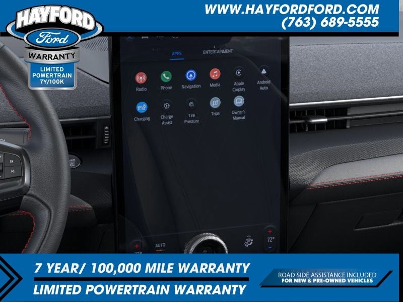 Contact Hayford Ford at (763)689-5555 or Visit us online at www.hayfordford.com for more pictures and details. Come take a test drive today. Located 2 Miles north of Isanti on Hwy 65 Ask For details. Check out this vehicle's great Panoramic Fixed-Glass Roof Package, Sport Appearance Package (Sport Pedals, Unique Front Fascia, and Wheels: 19 Monochromatic High Gloss Black-Painted), Technology Package (BlueCruise (equipment + 1 Year + 90-Day Plan) and Ford Co-Pilot360 Active 2.0), 10 Speakers, 4-Wheel Disc Brakes, ABS brakes, Air Conditioning, Alloy wheels, AM/FM radio: SiriusXM with 360L, Apple CarPlay/Android Auto, Auto High-beam Headlights, Auto-dimming Rear-View mirror, Automatic temperature control, Brake assist, Bumpers: body-color, Compass, Delay-off headlights, Driver door bin, Driver vanity mirror, Dual front impact airbags, Dual front side impact airbags, Electronic Stability Control, Emergency communication system: 911 Assist, Exterior Parking Camera Rear, Four wheel independent suspension, Front anti-roll bar, Front Bucket Seats, Front Center Armrest, Front dual zone A/C, Front reading lights, Fully automatic headlights, Heated door mirrors, Heated front seats, Heated steering wheel, Heated/Ventilated ActiveX Bucket Seats, Illuminated entry, Knee airbag, Low tire pressure warning, Memory seat, Navigation system: Connected Navigation, Occupant sensing airbag, Outside temperature display, Overhead airbag, Overhead console, Panic alarm, Passenger door bin, Passenger vanity mirror, Power door mirrors, Power driver seat, Power passenger seat, Power steering, Power windows, Radio data system, Radio: B&O Sound System by Bang and Olufsen, Rain sensing wipers, Rear anti-roll bar, Rear seat center armrest, Rear side impact airbag, Rear window defroster, Rear window wiper, Remote keyless entry, Security system, SiriusXM with 360L, Speed control, Speed-sensing steering, Speed-Sensitive Wipers, Split folding rear seat, Spoiler, Steering wheel mounted audio controls, SYNC 4A with Enhanced Voice Recognition, Telescoping steering wheel, Tilt steering wheel, Traction control, Trip computer, Turn signal indicator mirrors, Variably intermittent wipers, Ventilated front seats, and Wheels: 19 Bright Machined-Face Aluminum.