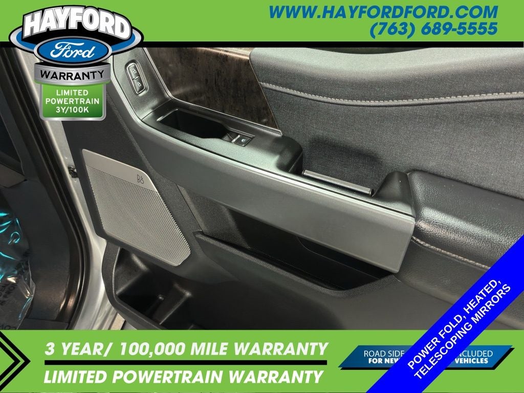 Contact Hayford Ford at (763)689-5555 or Visit us online at www.hayfordford.com for more pictures and details. Come take a test drive today. Located 2 Miles north of Isanti on Hwy 65. Internet price includes $500 Hayford Finance Bonus and $500 Trade-in Bonus. Ask For details. Check out this vehicle's great Camper Package (Rear Stabilizer Bar & Auxiliary Springs), Order Code 618A, ABS brakes, Alloy wheels, Auto High-beam Headlights, Compass, Front dual zone A/C, Fully automatic headlights, Heated door mirrors, Heated front seats, Illuminated entry, Low tire pressure warning, Remote keyless entry, Traction control, 190 Amp Alternator, 4-Wheel Disc Brakes, 8 Speakers, Adjustable pedals, Air Conditioning, AM/FM radio: SiriusXM with 360L, Auto tilt-away steering wheel, Auto-dimming Rear-View mirror, Automatic temperature control, Brake assist, Bumpers: chrome, Delay-off headlights, Driver door bin, Driver vanity mirror, Dual front impact airbags, Dual front side impact airbags, Electronic Stability Control, Electronic-Locking w/3.73 Axle Ratio, Emergency communication system: SYNC 4 911 Assist, Exterior Parking Camera Rear, Flow-Through Console, Front anti-roll bar, Front Bucket Seats, Front Center Armrest, Front fog lights, Front Leather-Trimmed 40/Console/40 Seats, Front reading lights, Garage door transmitter, Heated steering wheel, Leather steering wheel, Memory seat, Navigation system: Connected Navigation (includes complimentary 1-year trial), Outside temperature display, Overhead airbag, Overhead console, Panic alarm, Passenger cancellable airbag, Passenger door bin, Passenger vanity mirror, Pedal memory, Power door mirrors, Power driver seat, Power passenger seat, Power steering, Power windows, Radio: B&O Sound System by Bang & Olufsen, Rain sensing wipers, Rear step bumper, Rear window defroster, Security system, SiriusXM Radio w/360L, Speed control, Split folding rear seat, Steering wheel memory, Steering wheel mounted audio controls, SYNC 4 w/Enhanced Voice Recognition, Tachometer, Telescoping steering wheel, Tilt steering wheel, Trip computer, Turn signal indicator mirrors, Variably intermittent wipers, Ventilated front seats, and Wheels: 18 Bright Machined & Carbonized Gray Alum.
