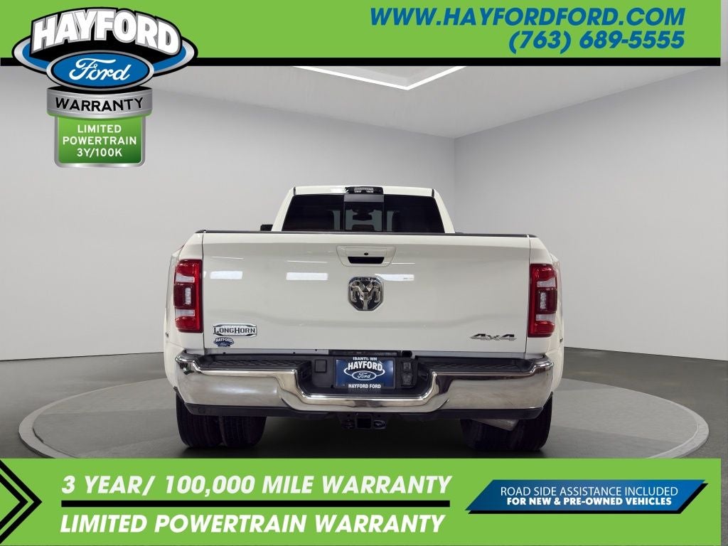 Contact Hayford Ford at (763)689-5555 or Visit us online at www.hayfordford.com for more pictures and details. Come take a test drive today. Located 2 Miles north of Isanti on Hwy 65. Internet price includes $500 Hayford Finance Bonus and $500 Trade-in Bonus. Ask For details. Check out this vehicle's great Chrome Bumper Package (Bright Front Bumper, Bright Rear Bumper, and Chrome Tow Hooks), Cold Weather Group (Engine Block Heater and MOPAR Winter Front Grille Cover), Longhorn Level 1 Equipment Group (12 Touchscreen Display, 17 Speaker harman/kardon Premium Sound, 4G LTE Wi-Fi Hot Spot, Alexa Built-In, Apple CarPlay, Blind Spot & Cross Path Detection, Connected Travel & Traffic Services, Connectivity - US/Canada, Disassociated Touchscreen Display, For Details Visit DriveUconnect.com, For More Info, Call 800-643-2112, Global Telematics Box Module (TBM), Google Android Auto, GPS Antenna Input, GPS Navigation, HD Radio, Integrated Voice Command w/Bluetooth®, LED Bed Lighting, MOPAR Spray In Bedliner, Off-Road Information Pages, Power Deployable Running Boards, Radio: Uconnect 5 Nav w/12.0 Display, Ramcharger Wireless Charging Pad, Selectable Tire Fill Alert, SiriusXM Radio Service, SiriusXM w/360L, and Trailer Tow Pages), Quick Order Package 2HK Longhorn, Towing Technology Group (CTR Stop Lamp w/Cargo View Camera, Surround View Camera System, and Trailer Reverse Guidance), 6000# Front Axle w/Hub Ext, Box & Rear Fender Clearance Lamps, Center Hub, Clearance Lamps, Dual Rear Wheels, Heated door mirrors, Navigation System, Wheels: 17 x 6.0 Polished Aluminum, 10 Speakers, 115V Auxiliary Rear Power Outlet, 2 Way Rear Headrest Seat, 220 Amp Alternator, 3.73 Axle Ratio, 4 Way Front Headrests, 4-Wheel Disc Brakes, 50 Gallon Fuel Tank, 5th Wheel/Gooseneck Towing Prep Group, ABS brakes, Active Noise Control System, Adjustable pedals, Air Conditioning, Alloy wheels, AM/FM radio: SiriusXM with 360L, Apple CarPlay/Android Auto, Audio memory, Auto High-beam Headlights, Auto-dimming door mirrors, Auto-dimming Rear-View mirror, Automatic temperature control, Brake assist, Bucket Seats, Bumpers: body-color, Compass, Delay-off headlights, Driver door bin, Driver vanity mirror, Dual front impact airbags, Dual fron